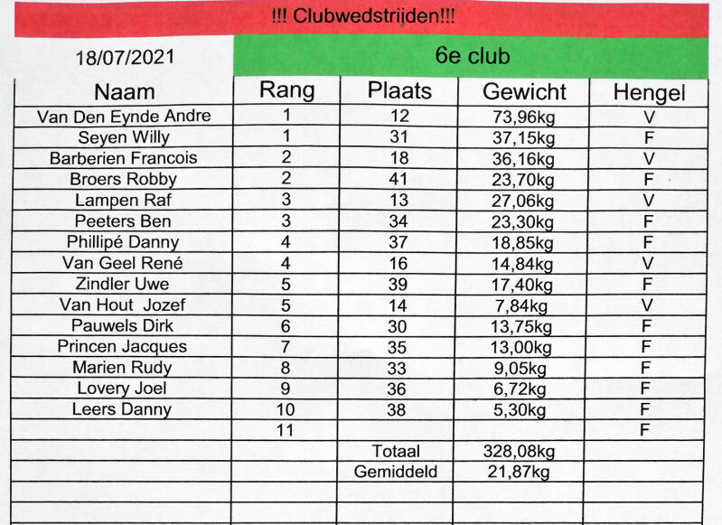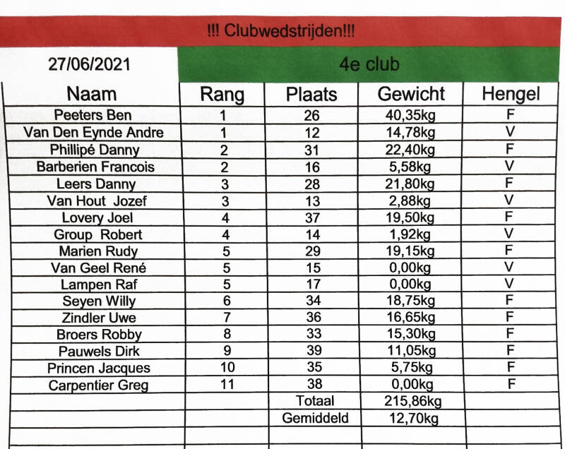 Hier onder de uitslagen van de Club wedstrijden 2019