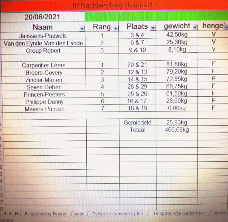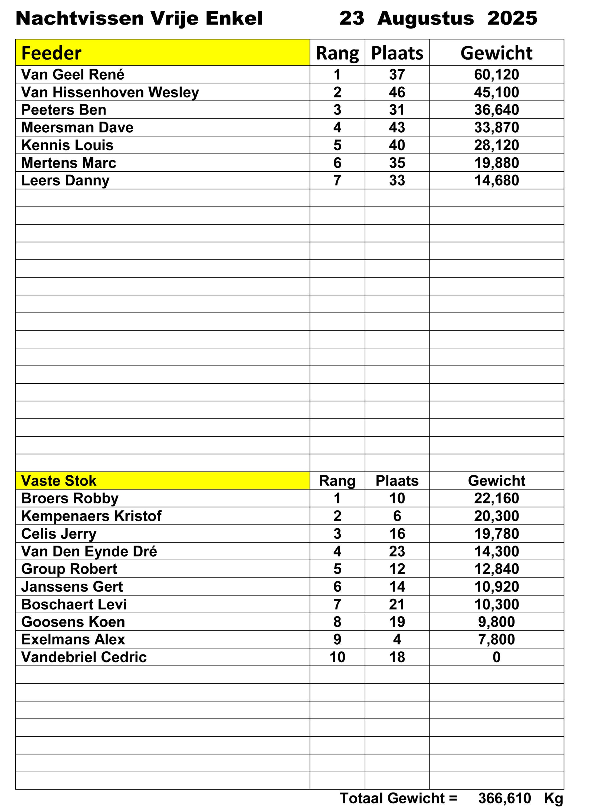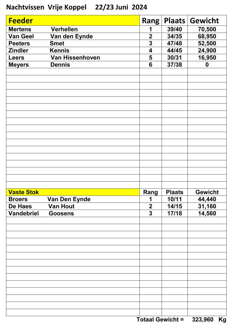 WEDSTRIJD UITSLAGEN NACHT VISSEN.